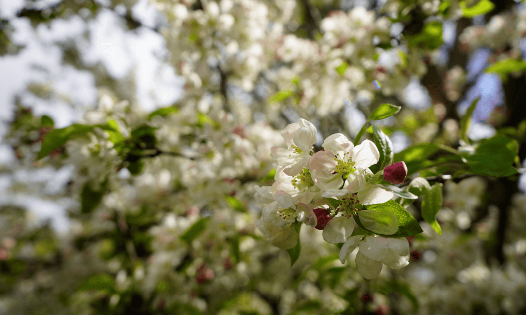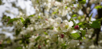 Flowering just before the leaves come back, the beautiful fragrant flowers of the apple trees are in full show. Step into the Walled Garden to see our impressive tree full of blossoms. Also a popular hedging shrub, the gardeners have trained the branches of other trees along walls and wire to border the fruit and vegetable beds. Aside from the popular apple fruits in autumn, the spring flowers have many uses which date back to medieval times. Apple blossoms have been used in traditional medicine, to treat skin conditions, in tea and used in cooking. Some of these uses still exist today, as well as being a popular fragrance used in soaps and perfumes.